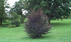 Drzewo o szerokiej, gęstej i kopulastej koronie. Ma ciemnopurpurowe