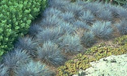 Zimnozielona trawa tworząca zwarte poduszki niebieskozielonych