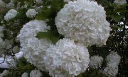 Kwiatostan koloru białego w kulistych skupiskach kwitnie w maju -