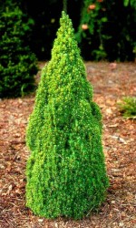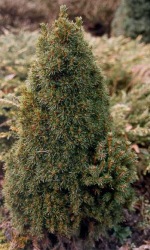 Miniaturowa, najwolniej rosnąca odmiana świerku białego. Rocznie